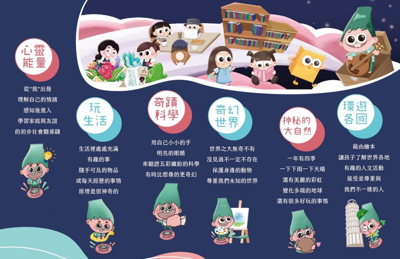 在奇幻的繪本探索系統中,孩子藉由初時視覺上及聽覺上對繪本的敏感度,踏入閱讀的美妙世界。而後內化為自身的理解,重新用自己的角度來詮釋繪本。我們尊重每個孩子追求答案的慾望與能力。在這裏,所有的答案沒有對錯,而且我們更喜歡與眾不同,更有創造力的答案。